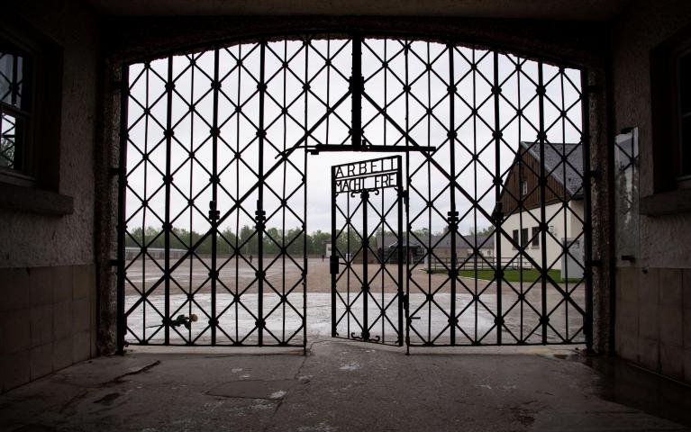 Ein Eingangstor, ein großer Platz, ein paar Gebäude – man könnte überall und nirgends sein, gäbe es nicht am Rande, doch irgendwie mittig des Platzes ein großes, unverwechselbares Mahnmal aus liegenden Skeletten, weltberühmt, genauso wie der Schriftzug am Tor in Höhe der Augen „Arbeit macht frei“.