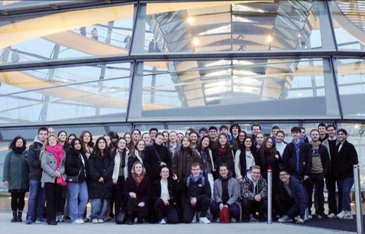 Angefangen hat die Reise am Freitag um 13 Uhr im Presse- und Informationsamt der Bundesregierung, als sich die Schüler*innen nach einer Kennenlernrunde über aktuelle Krisen und Konflikte der EU austauschten. Große Themen waren der Klimawandel, der Ukrainekrieg, Migration, Künstliche Intelligenz und das Superwahljahr 2024. Diese haben sie im Anschluss mit der ersten stellvertretenden Sprecherin der Bundesregierung, Christiane Hofmann, erörtert und diskutiert, wobei sie auch dazu eingeladen waren, eigene Fragen an die Bundestagsabgeordnete zu stellen. Kurz darauf ging es in die Unterkunft, wo die Teilnehmer*innen den Abend mit einer Gruppenarbeit beendeten.