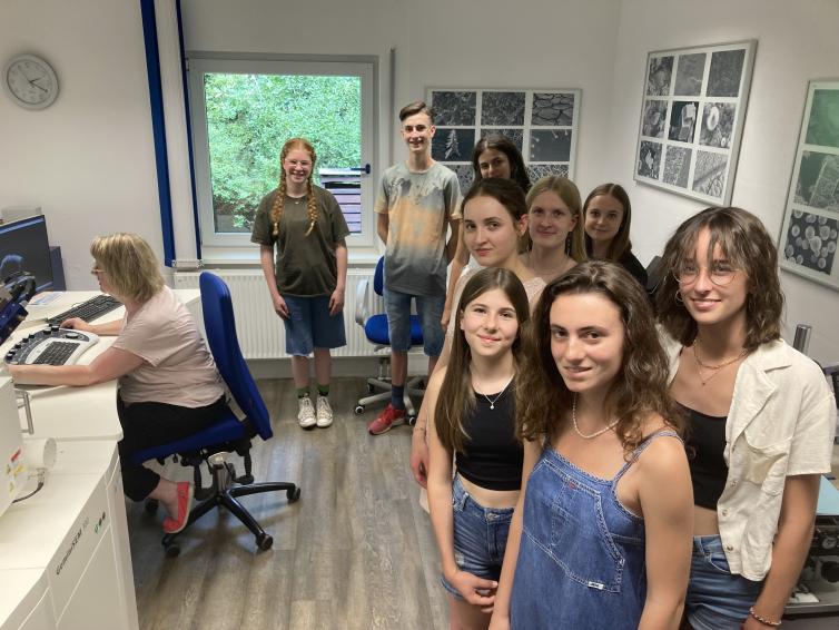 Nach einer Begrüßung wurde den Schüler*innen zunächst ein Einblick in die Räumlichkeiten geboten und die Bedienung der Geräte sowie die Anwendung dieser nähergebracht. Dabei wurde ebenfalls die Funktionsweise der Gerätschaften, insbesondere die des Rasterelektronenmikroskops, ausführlich erläutert.