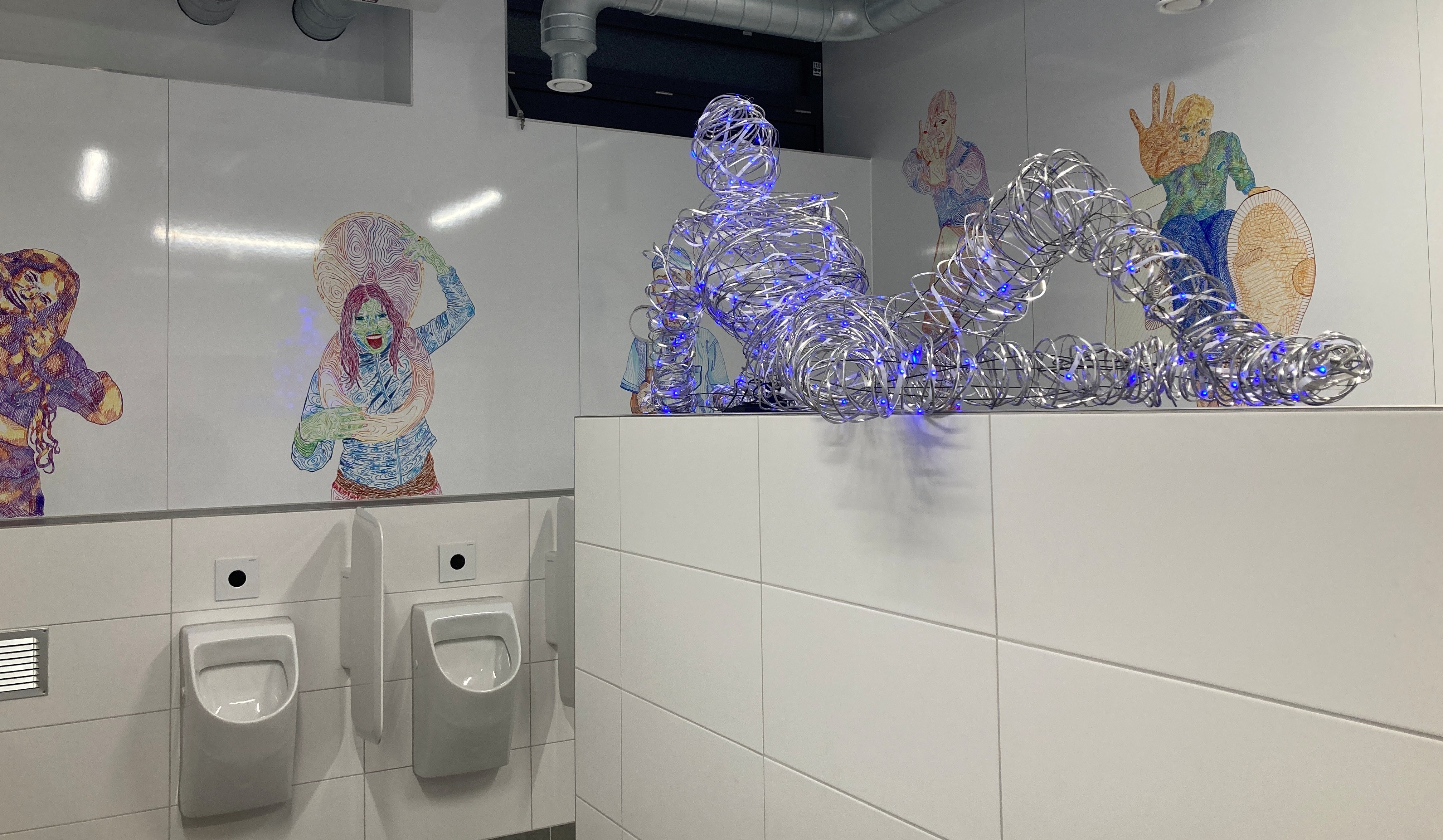Die aufwändige Renovierung der Jungentoilette im Erdgeschoss ist abgeschlossen – und das Ergebnis ist alles andere als gewöhnlich. Wo vorher graue Wände waren, findet man jetzt echte Hingucker.